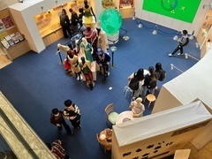 JICAに到着しました。各々が展示物を見ながら学習をしています。みんな元気です。