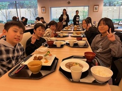 JICAでお昼ご飯を食べています。食べながら国際理解を深めています。みんな元気です。