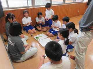 説明を聞いた後に、夏休みの思い出を語り合いました。聞き手が真剣だと話す方は...