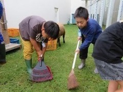 歓迎の言葉では、「ひつじさんと仲良くなりたい、餌をたくさんあげたい」という気持ちを伝えました。ふれあいタイムでは、くずの葉をあげたり、羊の背中をそっと撫でたりする様子が見られました。翌日からは、羊当番の子どもたちが張り切って小屋掃除を行っていました。