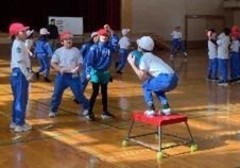 体育のポートボールに取り組んでいます。パスの仕方やチームのメンバーの立ち位置、声掛けなどを意識して、スムーズにゴールに繋げるよう、協力する姿が見られます。
