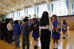 金管移杖式を行いました。この一年間、運動会や糸東小まつりでの演奏を通して、聴いてくださる方々に笑顔と感動を届けることができました。演奏する楽しさだけでなく、時には上手くいかないもどかしさや悔しさを感じたこともあるはずです。どんな時も、互いに励まし合い、高め合う仲間が支えとなり、子どもたちは大きく成長しました。 一年間ひまわりバンドを応援してくださり、ありがとうございました。