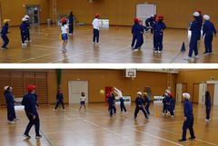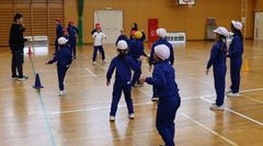 9日、全校体育で「王様ドッジボール」をしました。相手チームに秘密にして、自分たちのチームの王様を決めます。そして試合の中でその王様が当てられ、ボールをキャッチできず床に落としてしまったら、そのチームの負けとなります。