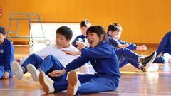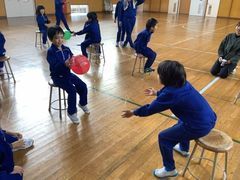 12月2日、子ども主催のギネス記録会を行いました。仲間と楽しみ、学校をさらに面白くすることがねらいです。種目は、ペアでの風船パスと20mお尻歩きです。