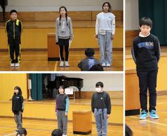 79日間の長い2学期が終わりました。終業式では、校長が大きな行事のどれもが素晴らしかったと語り、各学級の成長を振り返りました。5・6年生の4名には修学旅行で様々なことを進んで学んだこと、3・4年生の6名には学習発表会で表現力を高めたことを褒めていました。