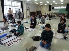 はじめに、校内放送での「書き初め講話」がありました。正座をし、背筋を伸ばし、心を落ち着かせて聞いていました。