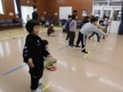 子どもたちも、皆さんの投げ方をお手本にしながら、徐々に点数を意識し始めて気合が入ってきました。(「投げるときにひざを曲げる」というコツまでマスターした子もいました!)
