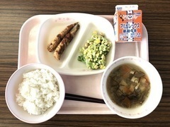 豆腐はいつもより大きくて大豆の味がしっかり味わえました。わかめご飯もメンチカツも子どもたちに人気の献立です。