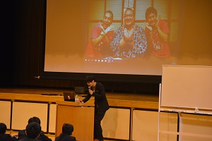 <PTA講演会> 今日は、PTA文化部主催の講演会が行われました。講師は、NAMARAエンターテイメントの「高橋なんぐ」さんです。「人間関係・コミュニケーションで大切なこと」の演題で講演いただきました。 「高橋なんぐ」さんは、長岡市の出身で、「吉本興業主催全国お笑いコンテスト in 東京ドーム」で優勝され、お笑い芸人として数々の実績を残すとともに「お笑い授業」と銘打った独自の講演活動を展開しています。また、お笑い芸人として数々の実績を残すとともに、「お笑い授業」と銘打った独自の講演活動を展開しています。学校や教育機関での活動は、1300校を超えています。 ラジオでは、BSNの「高橋なんぐの金曜天国」、テレビでは、「NSTスマイルスタジアム」、CMでは、「オートバンク」など、様々な活躍をされています。 講演の様子を紹介します。 まず、面白映像から始まりました。「なんぐ」さんが撮影してきた映像で、生徒は一気に盛り上がり、会場が笑いで一杯になりました。 次に20代でチャレンジした「世界一周」のお話です。旅をして初めて分かった「英語の大切さ」「自分には関係ないということは一つもない」という言葉が印象的でした。 最後に、「人とのコミュニケーションの大切さ」のお話です。「震災時のアナウンスは外国人や子どもにも分かりやすい表現が親切」「当たり前が当たり前ではない」「一人じゃない」などの言葉が心に残りました。