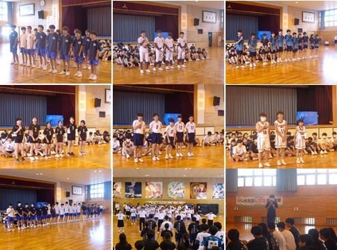 夏休み中から1,2年生を中心に活動し、時には先輩たちの胸を借りながらチームを編制してきました。その成果を各会場で発揮してください。また、駅伝競走部は校内で参加者を募り、地区大会に出場します。3年生が参加する中体連主催大会の最後を飾ります。上部大会への進出を目指して全力で襷を繋いできてください。