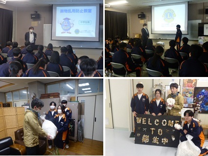 2年生を対象に薬物乱用防止教室を実施しました。講師には能生ライオンズクラブの清水 靖博 様をお迎えし、「薬物乱用の実態を知り、適切に対処できる力を身に付けよう」をテーマにお話しいただきました。講話では、薬物に関する具体的な数値や動画を用いて、現状や実態を分かりやすく紹介してくださいました。後半は「断る勇気」をテーマに、グループで話し合う活動も行いました。最後に清水様から「薬物乱用は皆さんにとって一つもよいことはない」という強いメッセージが送られ、薬物の危険性について改めて深く考える機会となりました。昼休みに、今年学校で収穫したコットンを(株)ao代表の家崎様にお渡ししました。コットンプロジェクトをリードしてきた、生徒会総務委員の3年生が感謝の言葉と気持ちを添え手渡ししました。能生中の誇りある活動として、全校で取り組んできた成果を改めて感じる時間となりました。