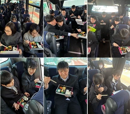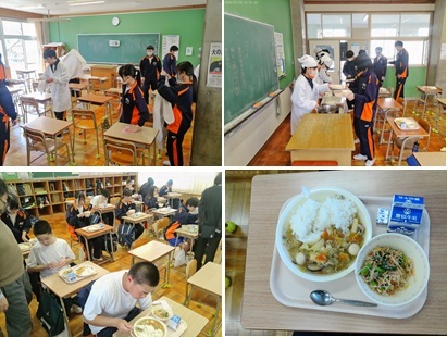 令和7年度も残すところ1週間となりました。来週23日(月)は3学期の終業式、そして1年の修了日となります。今週は4日間と短く、3学期やこれまでの1年間を振り返えってまとめを行い、次年度に向けての準備をする最終期間で、とても忙しい毎日となります。そんな中でもホッとするのが給食の時間。皆で協力して配膳や後片付けをして、おいしくいただきます。今日のメニューは、五目うま煮丼・ツナ入りバンサンスー・チーズ・牛乳。1・2年生ともに、おいしい給食を食べ、「ホッ」と一息という様子でした。給食も残り1週間。たくさん食べて残りの日数も元気に過ごしてほしいです。
