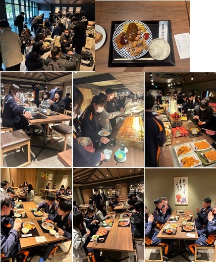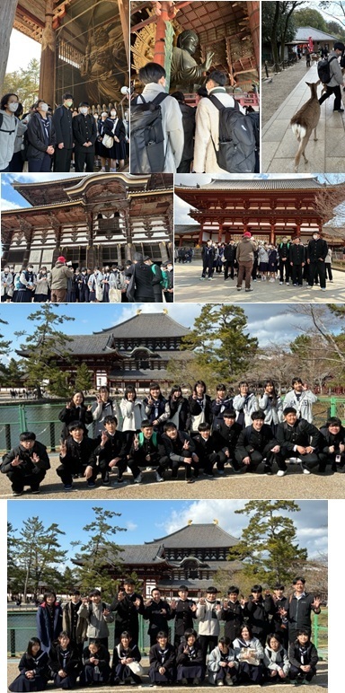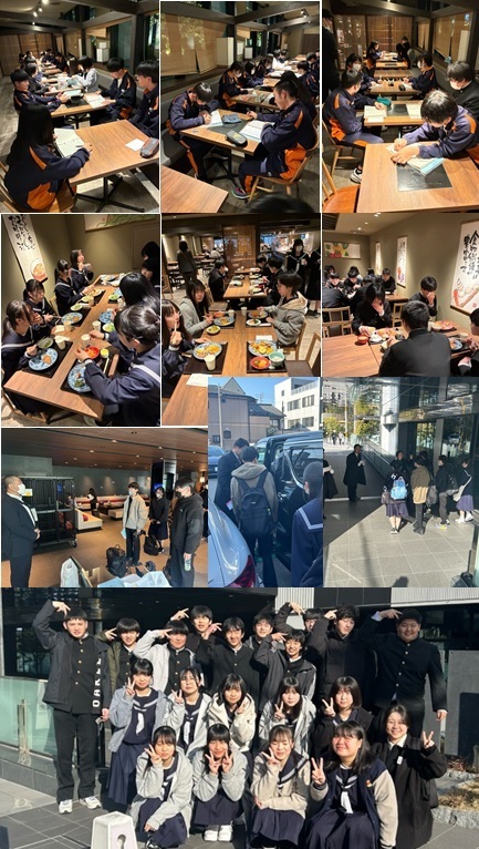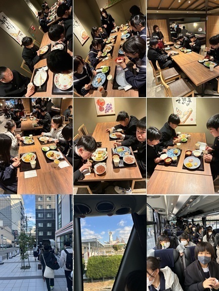 奈良公園は天気が晴れたものの風が冷たかったようですが、みんな元気にホテルに到着しました。夕食のバイキングも豪華です!学校で仲間と食べる給食とは別の楽しい夕食となりました。この後、1日の振り返りを行い、就寝準備です。ホテルのユニットバスは上手に使えるでしょうか。ゆっくりと睡眠をとって、明日の班別自主研修に備えてほしいです。