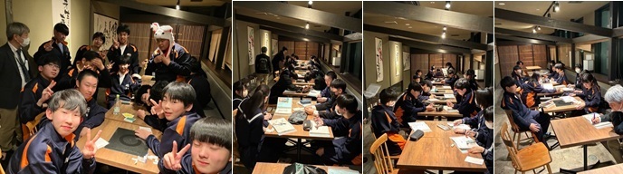 班別自主研修からのホテル外の夕食と絵付け体験、昨日は朝から夜まで活動して、疲れが溜まっている時でもリーダーを中心に最後まで修学旅行を創ろうとする立派な姿。まさに「自立&自律」です!