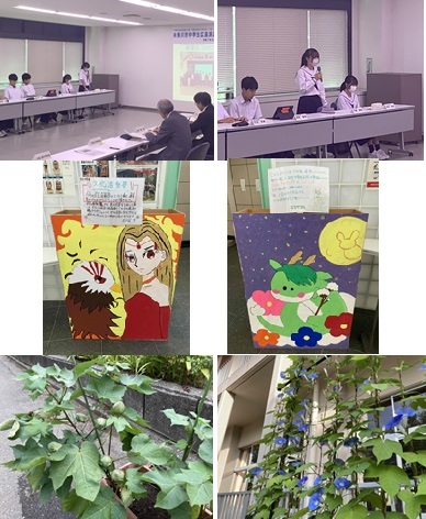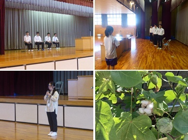 当校からは1年生2名の生徒が参加し、夏休みの理科の課題で行った研究の成果を発表しました。「ペットボトルで太陽熱温水器をつくろう」「暑い外で食べ物を干してみよう!」が2人の研究テーマです。ペットボトルの色の違いによる水温上昇の変化をグラフを使って分かりやすく結果にまとめてくれていました。また、りんごやバナナ、にんじん、玉ねぎなどの果物や野菜を炎天下に3日間乾燥させ、その形や色の変化など調べました。実際の乾燥させた果物や野菜を参加者が手に取って観察場面もあり、好評でした。研究の内容はもちろんですが、堂々と自分の考察を述べるなど発表も素晴らしかったです。