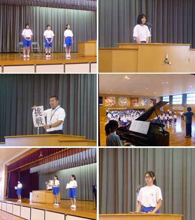夏休み中から1,2年生を中心に活動し、時には先輩たちの胸を借りながらチームを編制してきました。その成果を各会場で発揮してください。また、駅伝競走部は校内で参加者を募り、地区大会に出場します。3年生が参加する中体連主催大会の最後を飾ります。上部大会への進出を目指して全力で襷を繋いできてください。