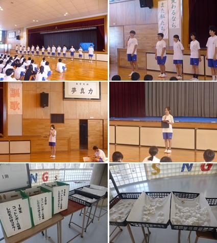 昨日の昼の放送では、放送委員長が少し緊張した声で「能生中放送局2025、改め『能生中スマイルチャンネル』スタート!」とタイトルコールし、放送が始まりました。これまで以上に給食時の放送に興味をもってもらいたいという思いから、タイトルを変更し、「今日は何の日?」という新コーナーも設けたことを説明していました。これまでの活動にとらわれることなく、年度途中でも新たな挑戦をした放送委員会に、大きな拍手を送りたいと思います。
