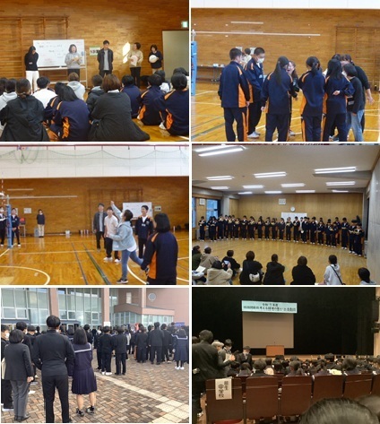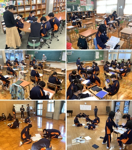 12日(金)、2学年の親子活動を実施しました。前半は、来年3月に予定している修学旅行のねらいや行程等について説明を行いました。また、旅行先に関する〇×クイズも実施し、親子で一緒に考えながら名所などについて楽しく学びました。後半は、親子混合でドッヂビー(ボールの代わりにフリスビーを投げる)を行いました。あちこちでハッスルプレーが見られ、笑顔あふれるひとときを過ごしました。雪が舞う日となりましたが、御参加いただいた保護者の皆様、PTA役員の皆様、ありがとうございました。放課後には、学習成果の展示を代表生徒と職員で行いました。1・2階の多目的教室には、これまでの授業等で取り組んできたさまざまな成果物が整然と並べられ、掲示されました。早速、今朝の朝活動の時間に1年生が各教室を回り、鑑賞しました。発想力豊かな力作ぞろいですので、明日から始まる期末面談の際にぜひお立ち寄りください。