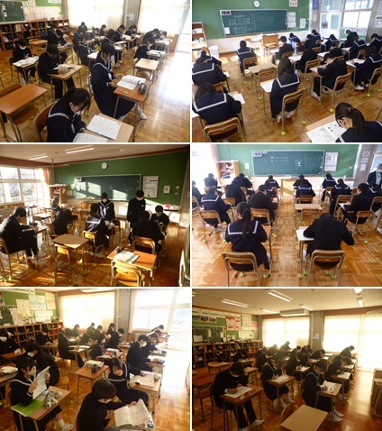 今朝、生徒玄関には、昨日行われた令和8年度生徒会役員選挙の開票結果が掲示されていました。登校してきた生徒たちは、その掲示をじっと見つめてから教室へ向かいました。昼の放送では、選挙管理委員長が改めて当選者を報告するとともに、無効票がなかったことも伝えられ素晴らしい選挙であったことを振り返ました。これで無事生徒会選挙のすべての活動が終了しました。お疲れ様でした。さて、新年度に向けて重要な二役が決定しました。二役がそれぞれに掲げた公約が実現され、令和8年度の能生中生徒会がさらに発展していくことを今から楽しみにしています。各階の多目的教室から、この時期ならではのあの匂いが漂ってきました。そう、墨汁です。国語の時間に、恒例の書き初め練習が行われています。1年生は「平和の光」、2年生は「目標達成」、3年生は「初心貫徹」が課題です。学年が上がるにつれて書体も変わり、気持ちを落ち着かせて一筆一筆に集中する姿が見られます。どんな力作が仕上がるのか、とても楽しみです。