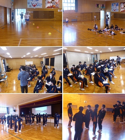 終業式後は学活で通知表を手にし、さらにその後は、延期になった球技大会(男女別学級対抗ドッヂボール大会)を行い、2学期を締めくくりました。珍プレーあり、好プレーありで白熱した試合を繰り広げました。競技のほかに「円陣大賞」なるものもあり、試合前からムードも最高潮で楽しいひと時となりました。体育委員の皆さん企画・運営ありがとうございました。2学期が無事終了を迎えられるのは、保護者・地域の皆様、関係機関の皆様の御理解と御協力、そして温かな見守りあってのことです。感謝申し上げます。今後ともよろしくお願いいたします。