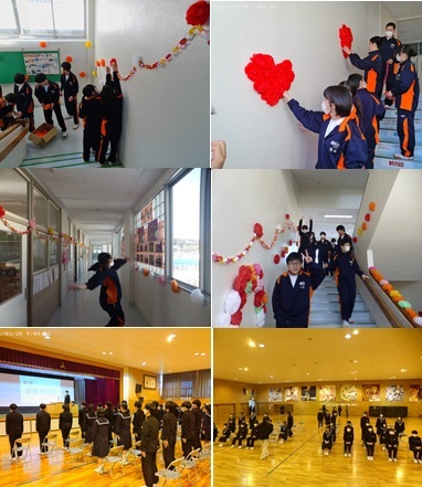 2/20(金)1限から1,2年生による卒業感謝ウィークの取組で校舎内が飾...