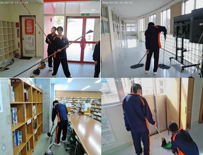 1・2年生が学活の時間を使い年度末大感謝清掃を行いました。この1年間、共に笑い、共に学んだ教室や廊下をはじめ、トイレや下駄箱などにも感謝の気持ちを込め、普段の清掃では行き届かない場所まで重点的にきれいにしました。掲示物がなくなった教室や廊下は、ちょっぴり寂しい感じもしますが、それぞれの学年が先輩として次の学年にしっかり引渡す準備ができました。