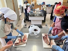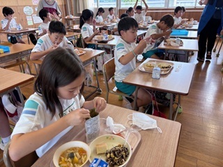 まずは、ご飯を炊くところから挑戦しました。鍋で炊くのは初めてという児童も多く、火加減に気を配りながら、みんなで協力して炊き上げました。どのグループもふっくらとおいしいご飯が炊き上がり、子どもたちからも思わず歓声が上がりました。