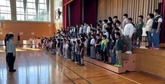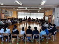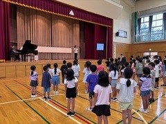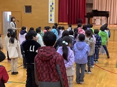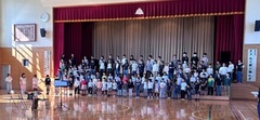 また、久しぶりに全校が集まりましたので、校歌を歌いました。ピアノの伴奏を...