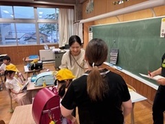 学校運営協議会の副会長 伊藤さんから教えていただきながら、1年生の子ども...