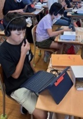 6年生の外国語科では、児童一人ひとりがヘッドセットを装着し、iPadを使...