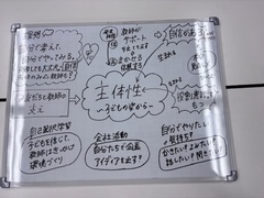 これは、「主体性」について話し合ったときのホワイトボードです。各グループ...