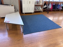 この左の写真は、1年生と2年生のオープンスペースに設置した「スタ場」です...