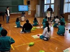 田海神楽クラブの7名の皆さんが、3年生に田海太神楽のことを教えに来てくだ...