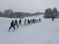 当日の午前中は雪が降り、視界もやや悪い状況でしたが、午後になると少しずつ雲が切れ、太陽の光がのぞく時間もありました。子どもたちはその中で思い切りスキーを楽しむことができ、笑顔がたくさん見られました。