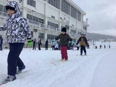 上級生はさっとスキーをはき、すぐに滑り出しました。一度身につけた感覚は体が覚えているものですね。寒い中、上着を脱いで滑る子も見られました。