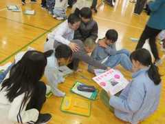 たてわり班のメンバーから6年生へ、6年生からたてわり班のメンバーへ、お互いにメッセージカードのプレゼントを渡しました。