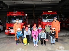 社会の学習で、糸魚川消防署へ見学に行きました。まず、消防車の説明を聞きました。いろいろな道具が積まれている救助工作車や水を積んだタンク車を見せていただきました。また、救急車の中にも乗せてもらいました。