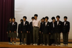 2月19日に生徒総会及び生徒会役員引継ぎ式が行われました。3年生が日々の活動の中で積み重ねてきた努力や工夫は、確実に学校をより良い方向へと導いてきました。この会を機に会長以下生徒会役員は2年生へと引き継がれました。会を終えた姿は、心なしか普段よりも背が伸び、成長を感じられる様子でした。
